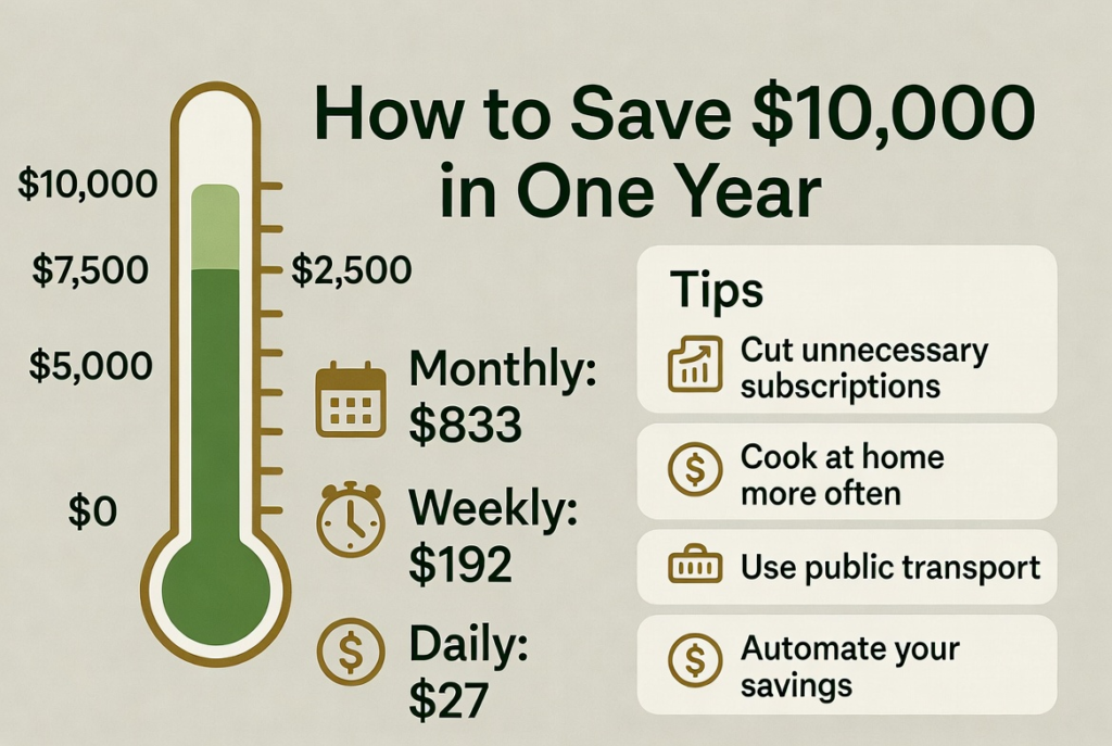 Saving $10,000 in one year is not about being perfect. It’s about being consistent and making small, smart decisions every single day.