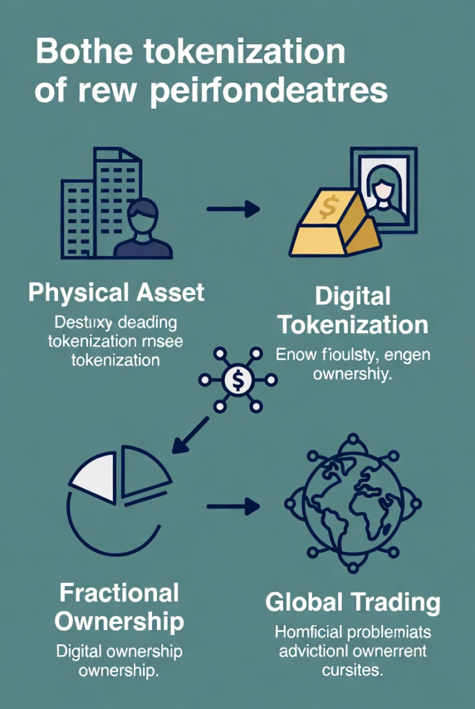 Instead of owning an entire building or painting, the asset is divided into many smaller digital tokens. Each token represents a proportional share of that asset. These tokens can then be bought, sold, or traded on blockchain platforms with greater speed and transparency.